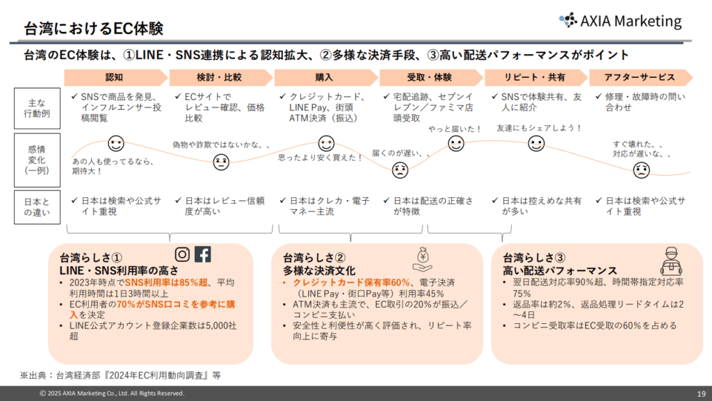 決済については、現地で一般的な決済方法に対応することで、購買のハードルを下げることができるでしょう。クレジットカードだけでなく、電子マネーやモバイル決済など、多様な決済手段を用意することが効果的です。