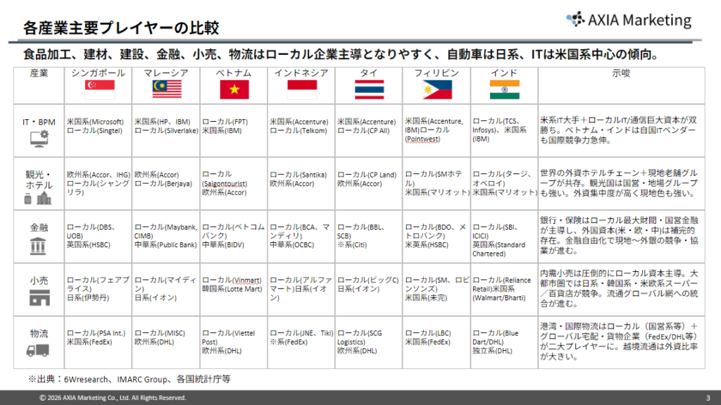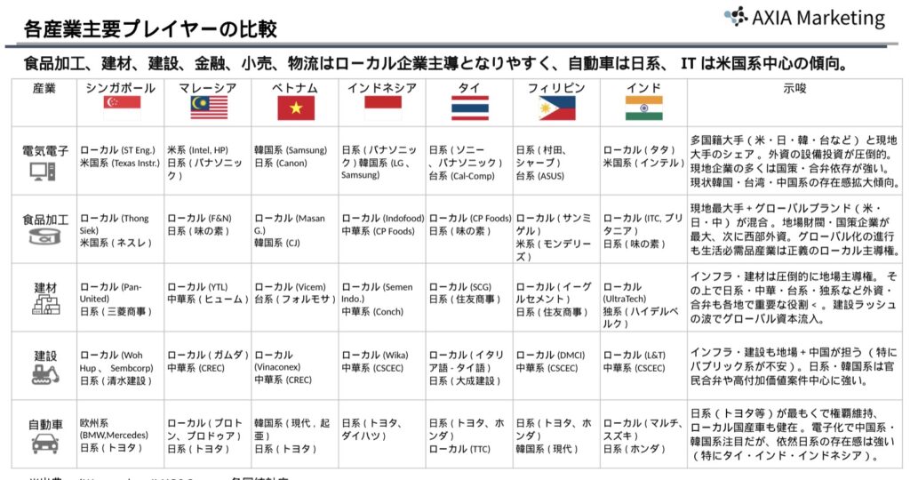 AXIA Marketingは、調査結果を分析するだけにとどまらず、現地の商習慣や実務制約を踏まえた「実際に動かせる戦略」まで落とし込む支援を提供しています。理想論ではなく、現場で実行可能な戦略設計を行うことに注力しています。
