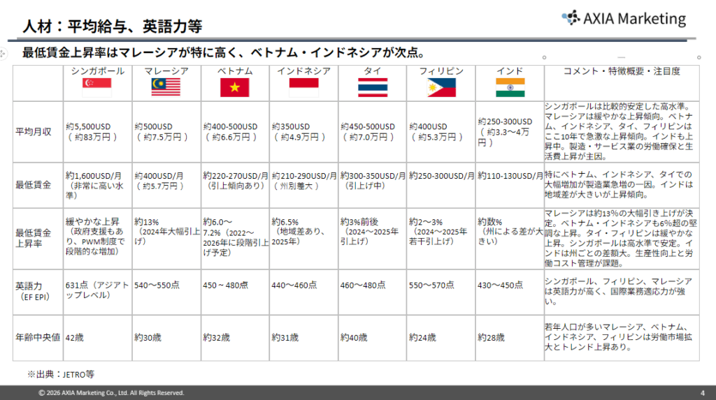 この地理的近接性は、物流コストの削減や迅速なサプライチェーン構築において大きなメリットをもたらします。また、タイやベトナムをはじめとする主要国では、すでに多くの日系企業が進出しており、日本式のビジネス慣行が一定程度浸透しているのも特徴的です。
