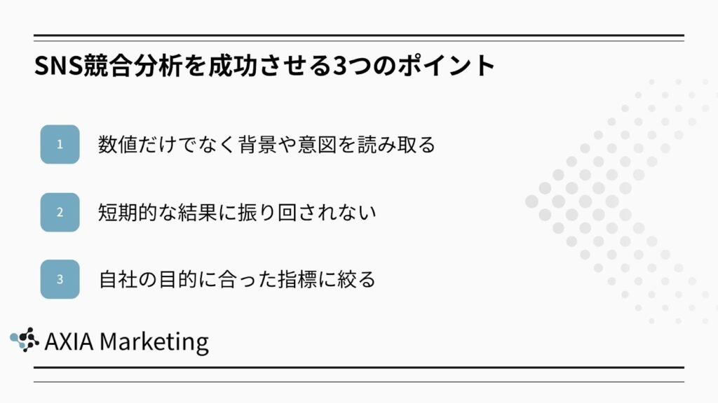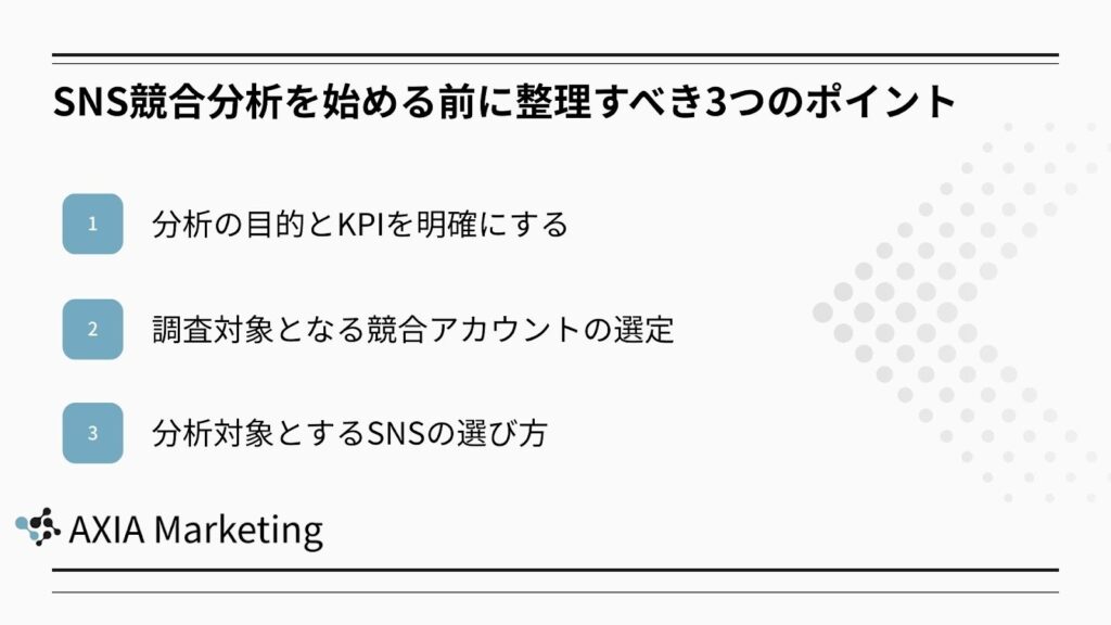 ここでは、SNS競合分析を始める前に押さえておきたい3つのポイントを解説します。