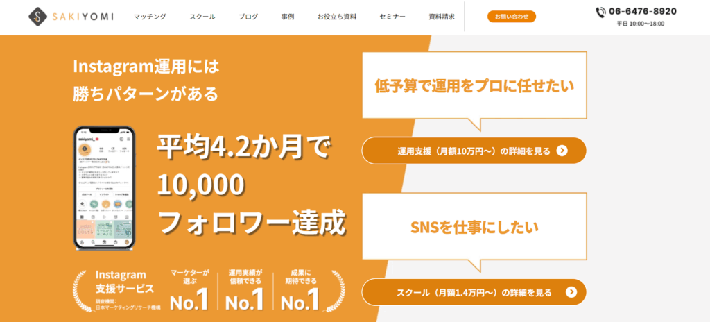 平均4.2ヶ月で10,000フォロワー達成した実績のあるサービスです。SAKIYOMIでは、数百のアカウント運用データから導いた最新のInstagramのアルゴリズムに基づいて、再現性高くフォロワーを増やせます。