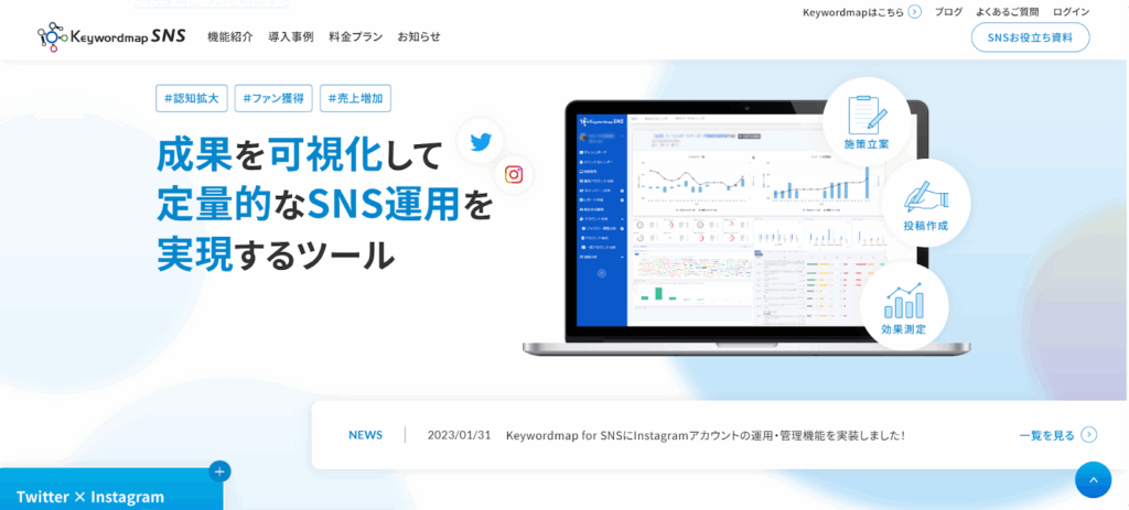 オーガニック運用のツール提供にとどまらず、SNSマーケティングに役立つ高付加価値のソリューションを提供しています。