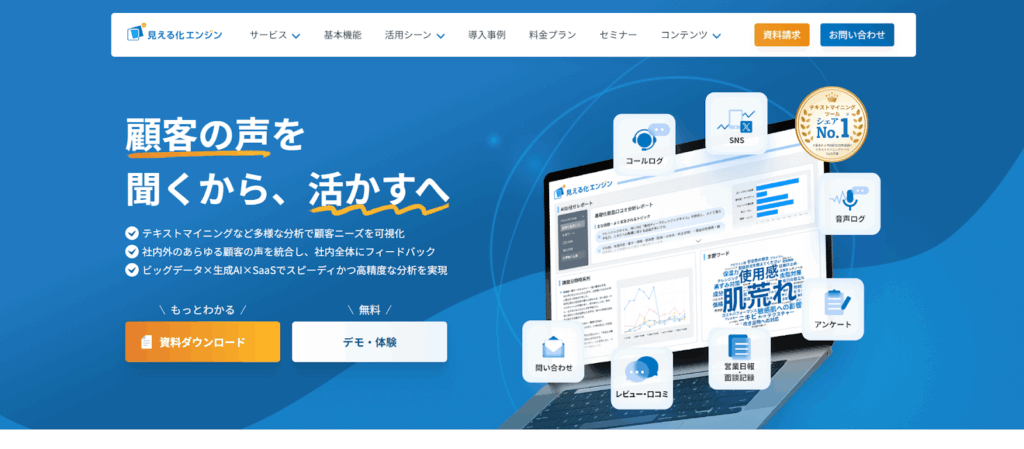 見える化エンジンは、SNSやWeb上の投稿を収集・分析するソーシャルリスニングツールです。特定ブランドやキーワードに関する言及を可視化し、消費者の声や評価傾向を把握できます。